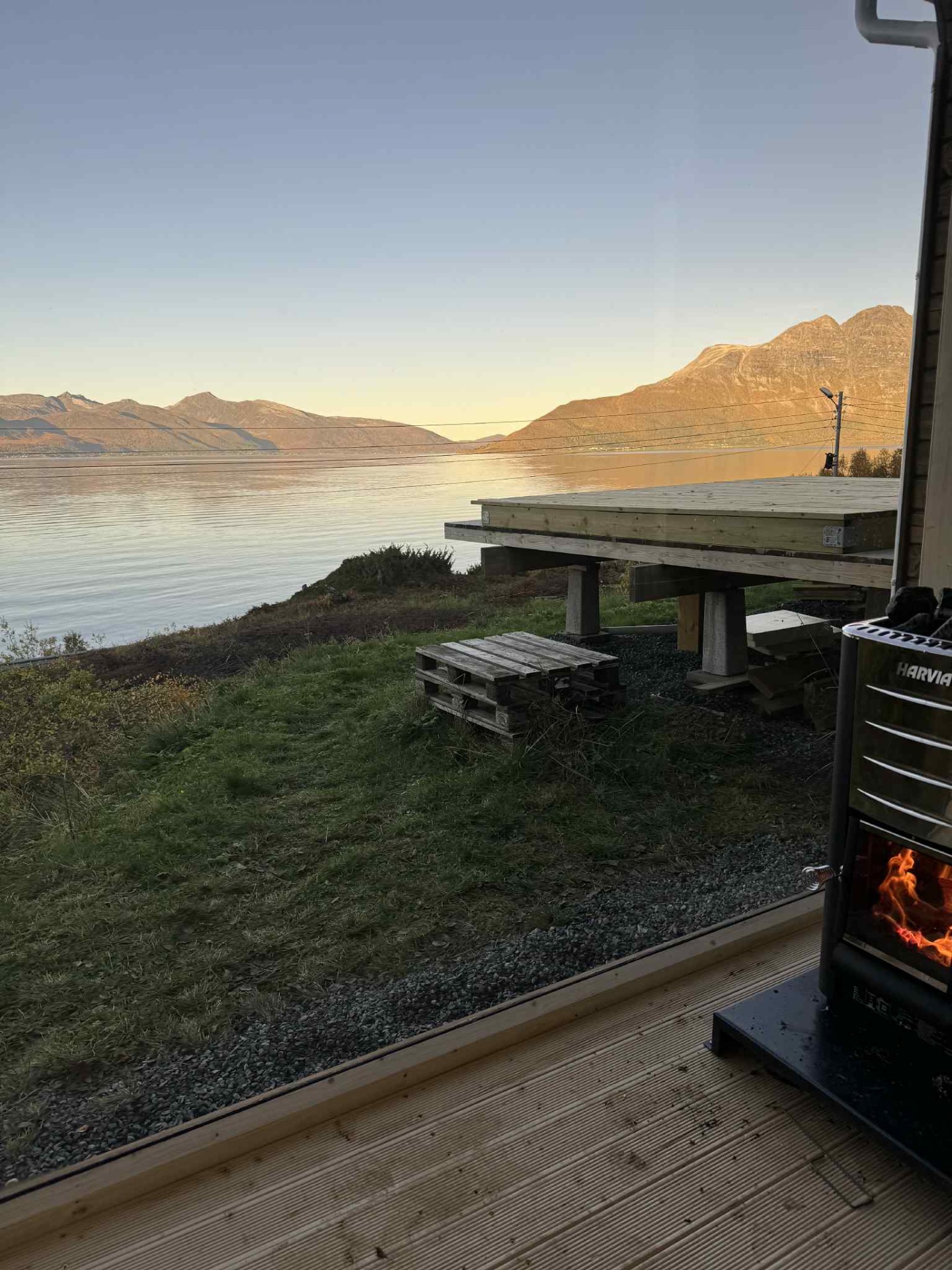 For strøm og lys bruker vi Harvia Light badstuelamper, spesielle varme- og vannbestandige kabler og IP65 vanntette brytere.