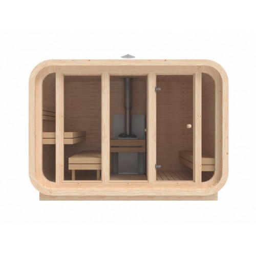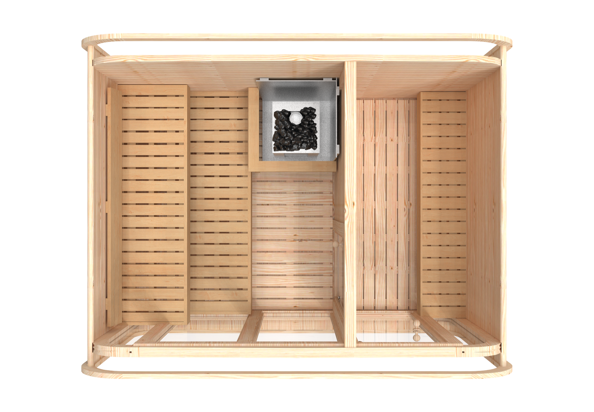 Kreta Badstue er den romslige badatue med benker i 2 nivåer med plass til naboer og 3 generasjoner familie på besøk.